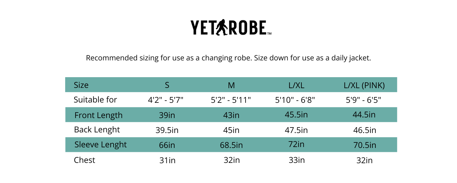 Consider sizing down if you fall between sizes or if you plan to use your YETIROBE as an everyday jacket.